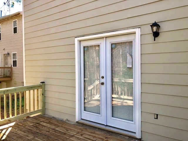 On the main level, the front door opens into the entry hall. Directly ahead is the dining room. The kitchen is situated between the den and dining room. The kitchen has a range, refrigerator and dishwasher. The den features a wood-burning fireplace and opens onto the rear deck.