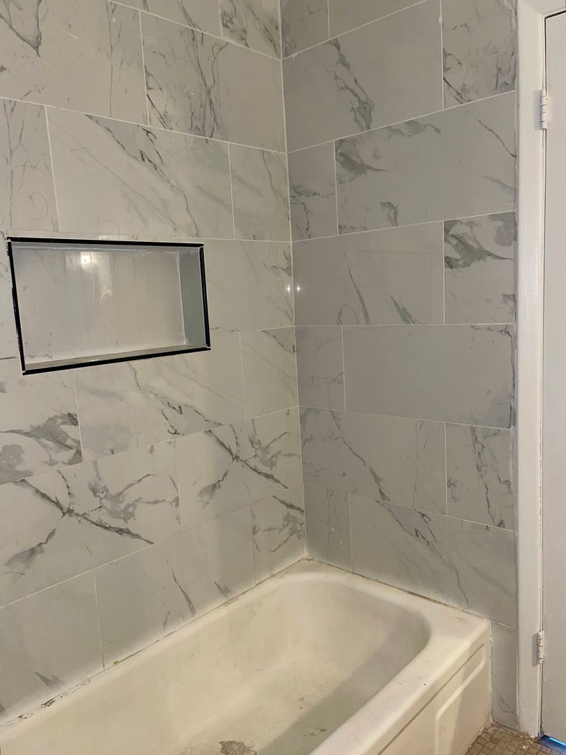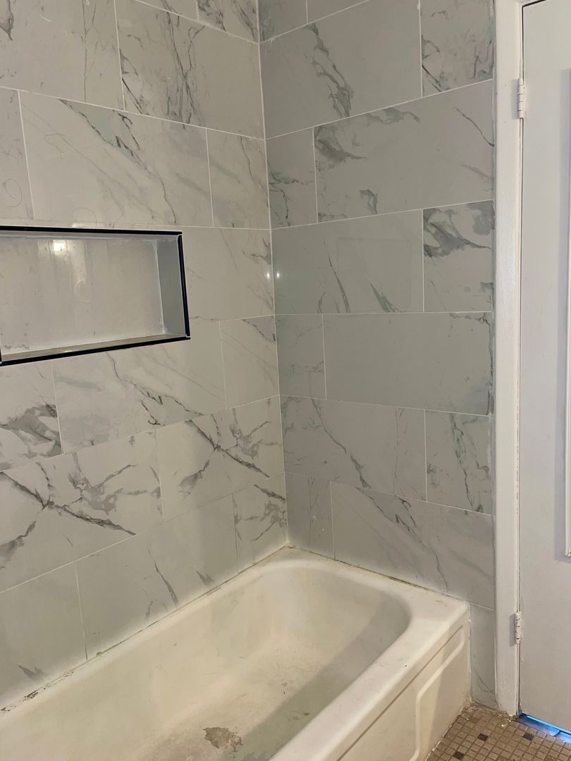 There are 3 Bedrooms that Share a Hall Bathroom w/ Marbled Tub Surround