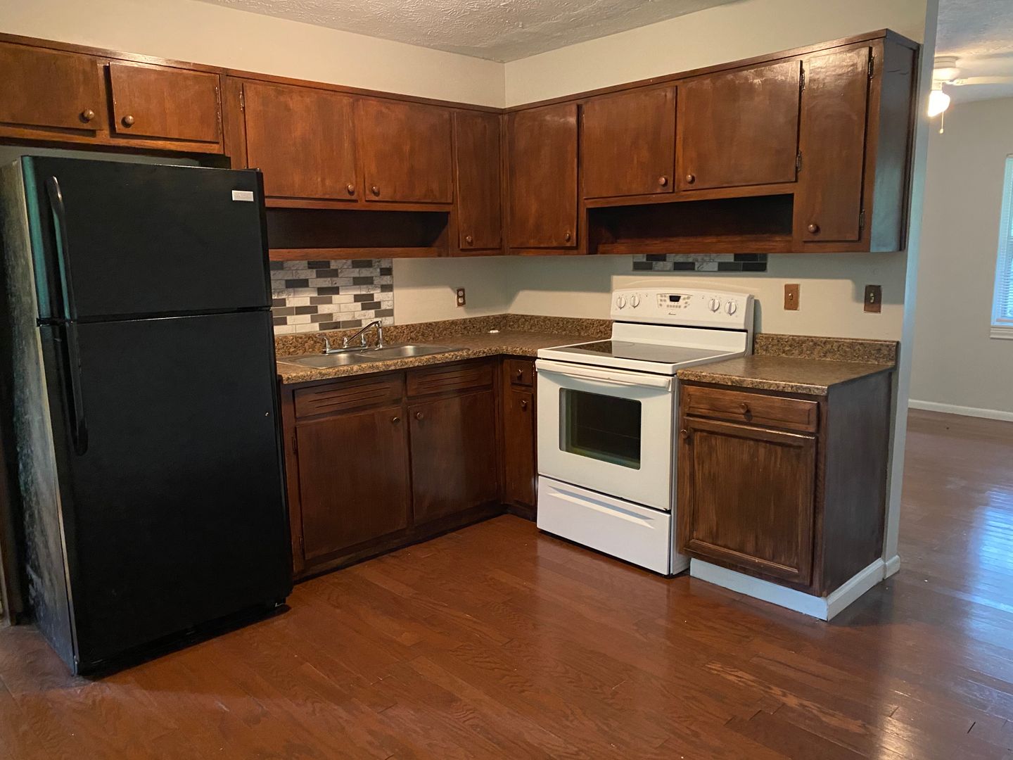 An Eat-In-Kitchen With Newer Counters & Appliances Including Refrigerator & Electric Range
