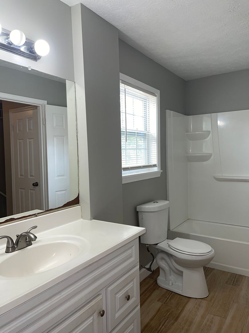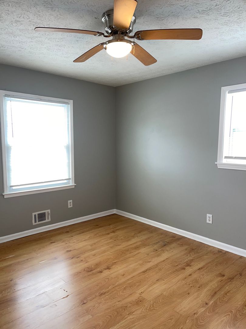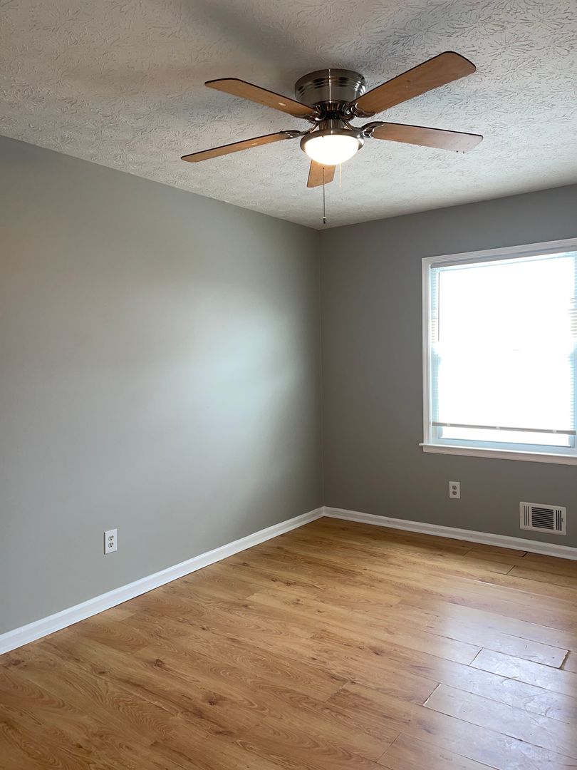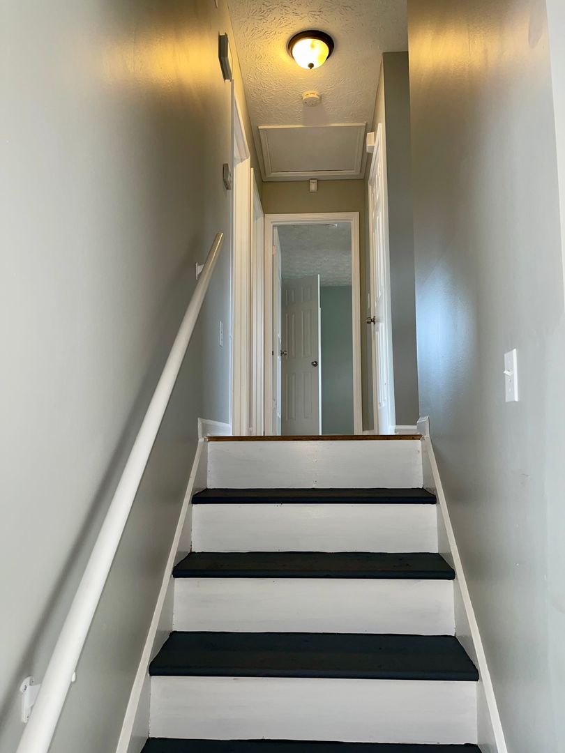 The 3 bedrooms are upstairs. The home's two secondary bedrooms share a half-jack-and-jill bath, while the master has direct access to the home's full bath--also accessible from the hallway. The bedrooms all have ceiling fans.