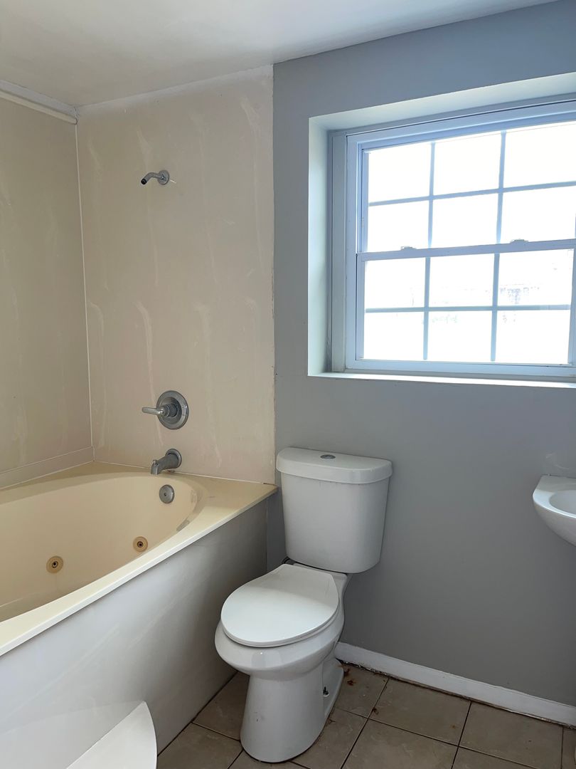 Downstairs, there's a a large unfinished basement with washer & dryer hook ups and a full bathroom with garden tub.