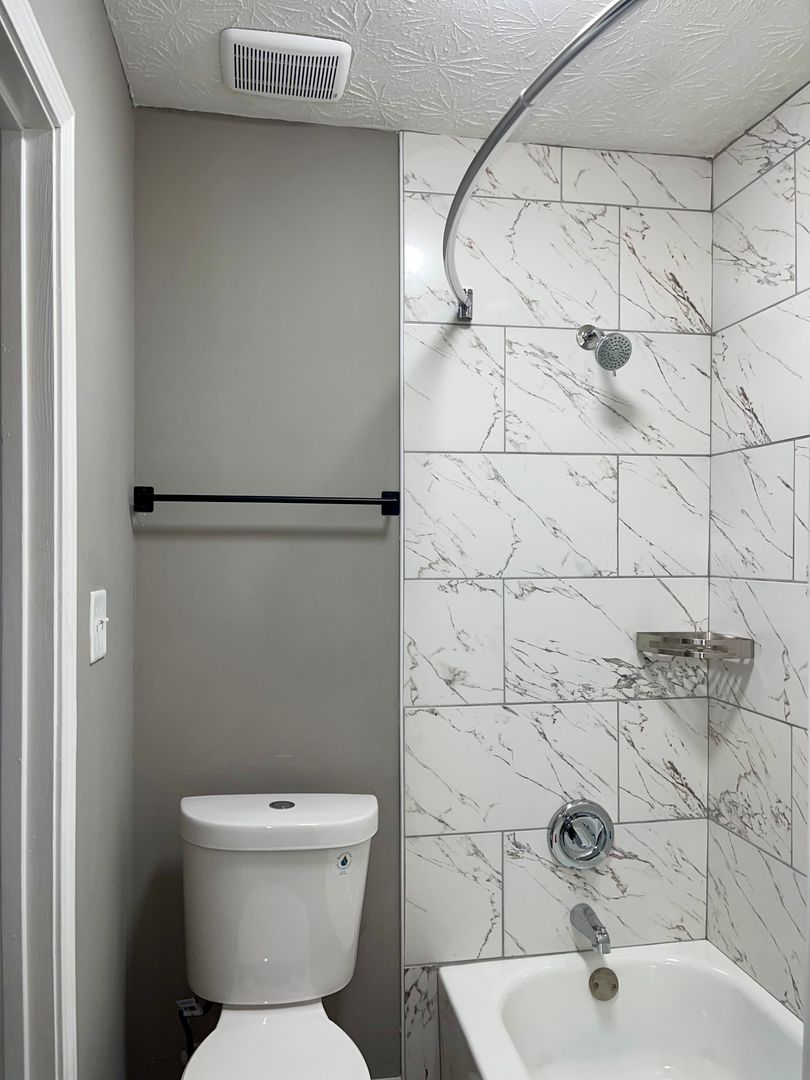 New Bathrooms Including Toilets, Vanities, Sinks, Faucets, and Quartz Tiled Shower