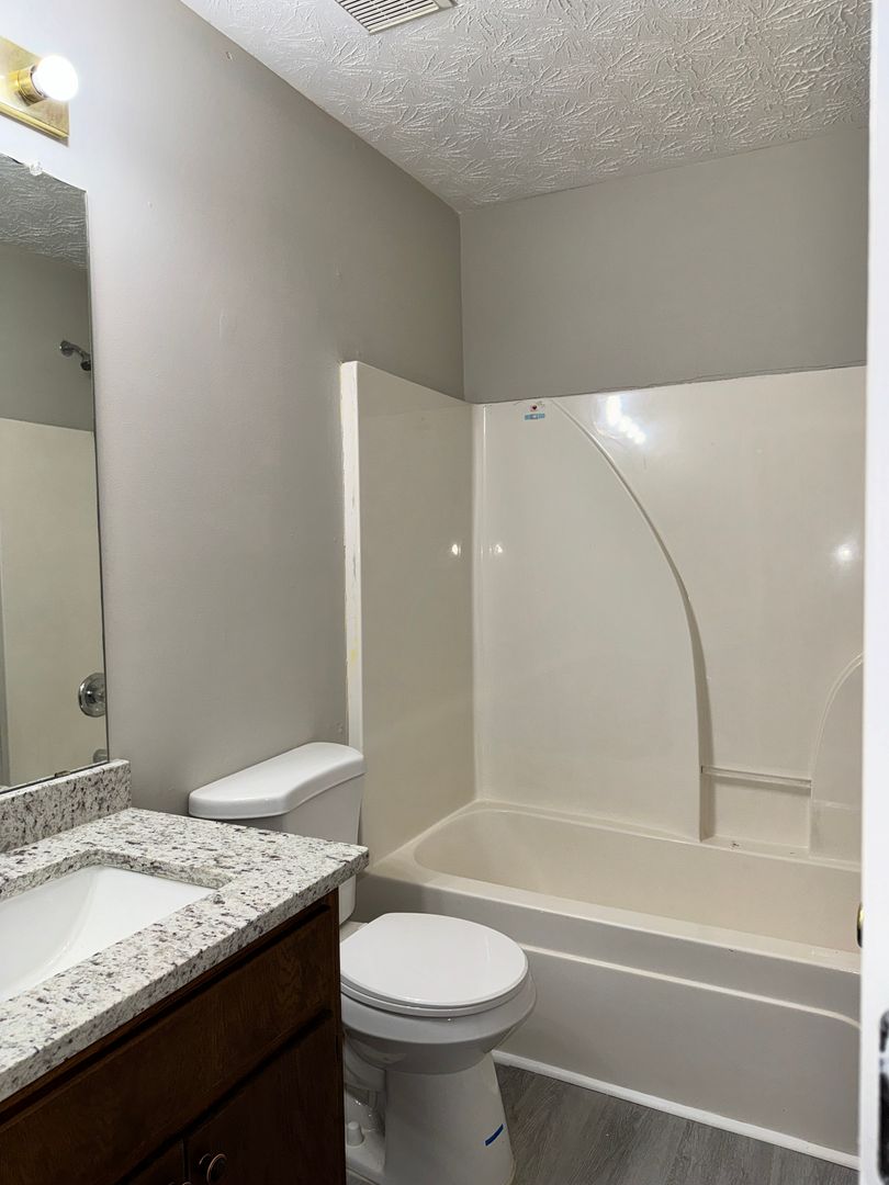All of the bedrooms are upstairs. There is an open hallway with extras bonus space great for a den or office. Just off the stairs, two secondary bedrooms share a full hallway bath. The master bedroom has a vaulted ceiling, while the attached en-suite bath has a garden & dual sink. There's also a separate walk-in closet. Both bathrooms feature new granite counters.